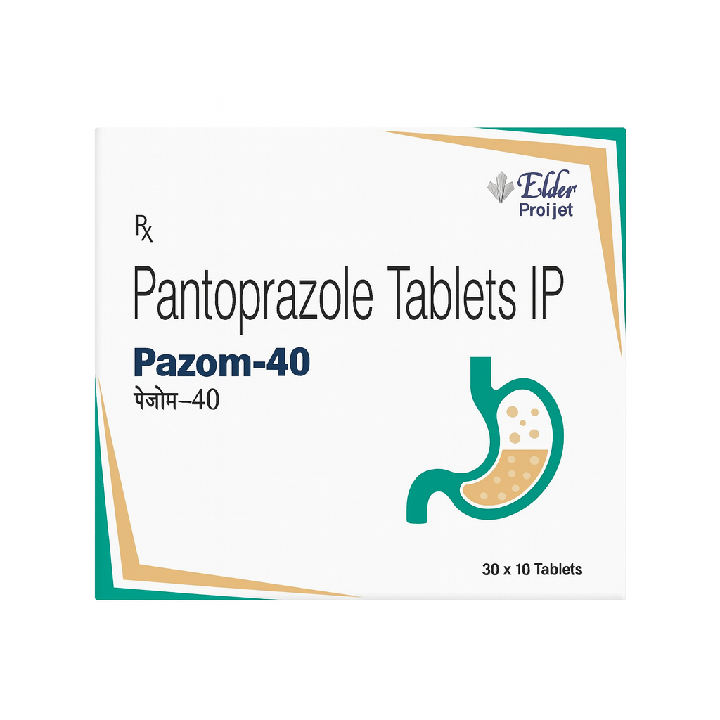 PAZOM 40mg Tablet reduces the amount of acid produced in the stomach. It is used to treat acid-related diseases such as heartburn, acid reflux, peptic ulcer disease, and Zollinger–Ellison syndrome. The medicine provides relief from symptoms and promotes healing.